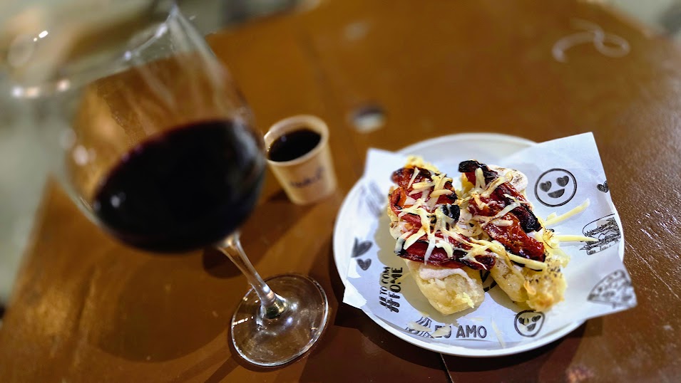 O que mais amei: a brusqueta da casa chega no pão focaccia artesanal, com tomate seco, creme de castanha e parmesão maçaricado — uma combinação que equilibra acidez, cremosidade e aroma. O pão queijudo vem recheado com tomate seco e creme de queijo, daqueles que confortam já na primeira mordida.