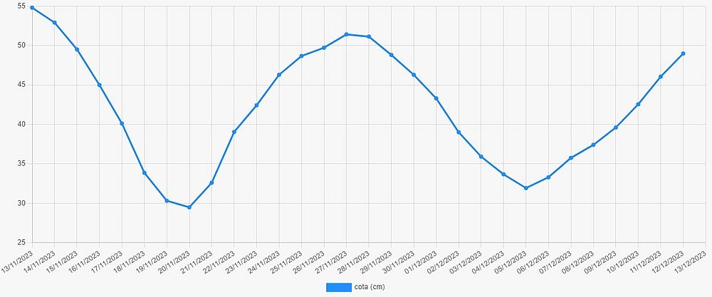 Gráfico (em cm) do nível da Laguna Mundaú nos últimos 30 dias. Reprodução/SIRH