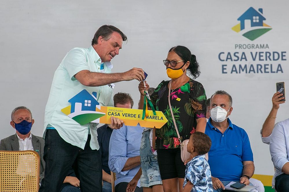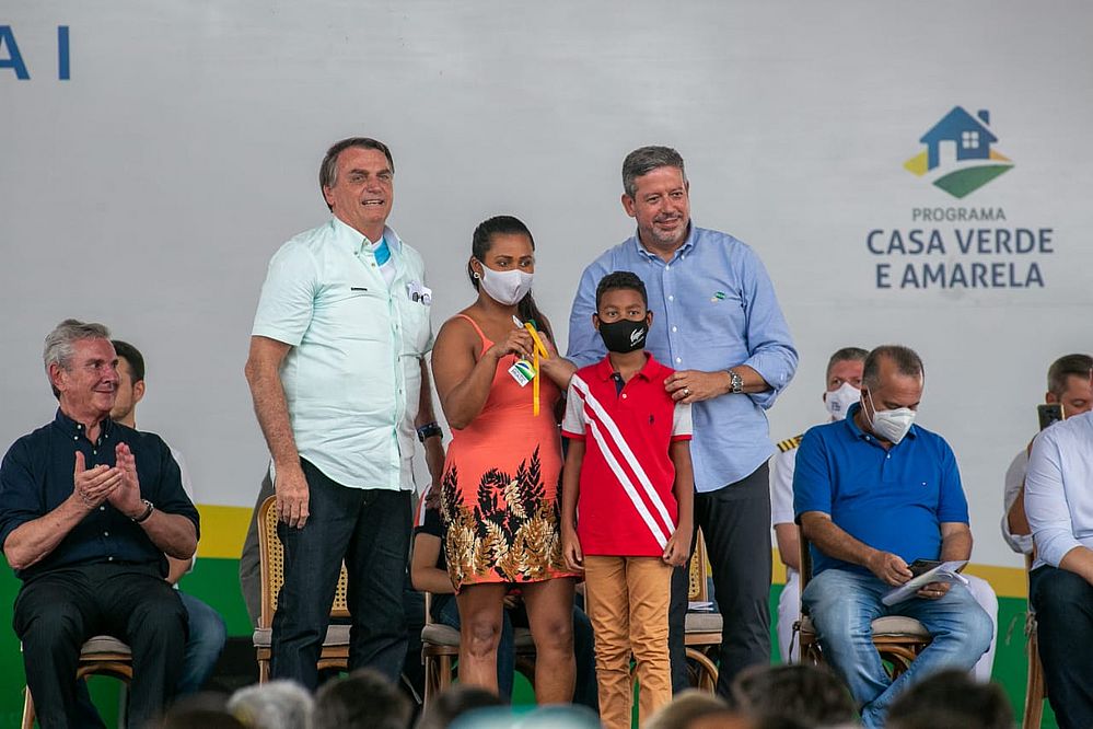 Cumprindo o primeiro ponto de usa agenda em Alagoas no maior bairro da capital alagoana, o presidente Jair Bolsonaro (sem partido) chegou ao Benedito Bentes para a entrega de 500 unidades habitacionais do Residencial Oiticica I, por meio do Programa Casa Verde e Amarela.