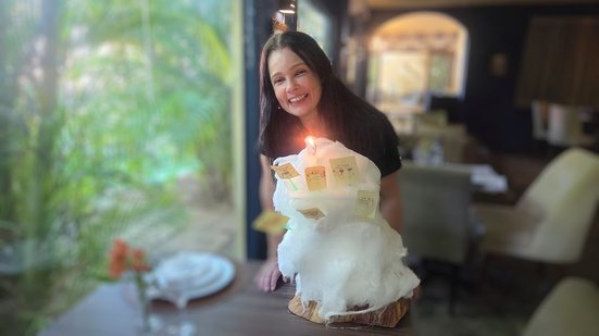 Para marcar os 12 anos do restaurante Del Mare, a chef Thaisa de Mello escolheu um gesto simbólico e afetivo: um bolo gigante de algodão doce, oferecido aos aniversariantes que escolhem comemorar suas datas especiais na casa. O doce, leve, remete às boas lembranças da infância e traduz a essência do restaurante — acolher, emocionar e celebrar.