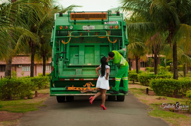 “Ela disse que sempre tinha vontade de fazer um ensaio assim porque o pai dela também trabalha como gari. Na hora, a gente achou super bacana! Como o meu marido trabalha com essa profissão foi uma ideia super original”, lembra Neyrielen.