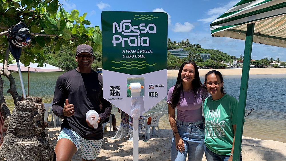 O Nossa Praia existe desde o ano de 2015, é um dos mais importantes projetos de educação ambiental do Brasil, além das placas com sacolas biodegradáveis, também organiza mutirões de limpeza, ações de sensibilização e instalação de outras estruturas educativas.
