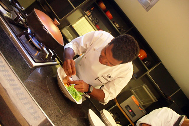 O “Atum temperado com azeite de mostarda” é uma das entradas do almoço executivo sob a batuta de Jonatas Moreira. E com direito a assistir o espetáculo do chef cozinhando ao vivo. Esse é o conceito da cozinha aberta, uma vitrine, tendência em alta na gastronomia brasileira, que também cuida de valorizar os ingredientes locais. Repito o lembrete: essa iguaria depende de “o mar está para peixe” ou seja, se não cair na rede do pescador naquele dia, não tem a iguaria, porque para o chef não vale o atum congelado.