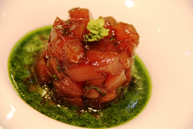 Atum temperado com azeite de mostarda é uma das entradas de sucesso do almoço executivo sob a batuta do chef Jonatas no Espaço Vera Moreira (nova casa do restaurante Akuaba)