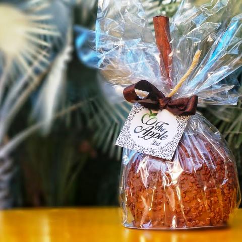 Apresentação: Além do sabor, a maça verde é elegante, vestida numa embalagem transparente, com laços e aroma de canela, que é a haste de sustentação da fruta.