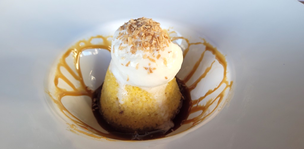 Petit maceió, uma versão nordestina do bolo de milho, com sorvete de tapioca