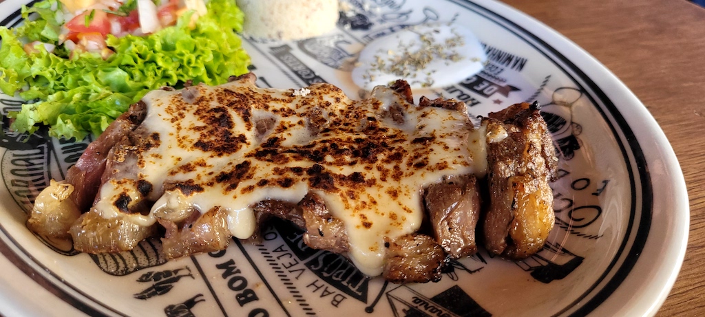 Quem ama churrasco, agora tem mais um novo endereço, Maceió Grill (@maceiogrill) na Av. Dr. Mário Nunes Vieira, 230 – Jatiúca (na rua antes do Caldíssimo Ele & Ela), lá tem parrillha de carnes argentinas e uruguaias. Também tem proposta de almoço executivo para quem busca um precinho mais em conta. Inicie a expedição gastronômica pela isca de chorizo. A entrada vem cortada em tiras, coberta com queijo e escoltada por farofa, vinagrete e molho especial da casa. Carne macia, sal na medida certa, molho e farofinha para compartilhar.