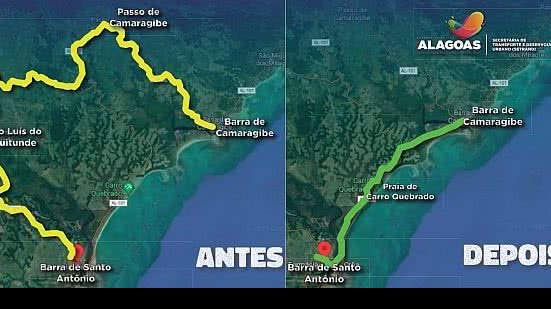 A obra é fundamental para o desenvolvimento econômico e do turismo no estado, principalmente no Litoral Norte, uma das regiões mais procuradas pelos visitantes e por novos investidores. Com o novo trecho, de 13 quilômetros, o percurso entre a capital Maceió e as cidades da famosa Rota Ecológica de Milagres – Passo de Camaragibe, São Miguel dos Milagres e Porto de Pedras – será encurtado em 40 minutos e 35 km. O investimento é de R$ 21 milhões em recursos próprios do Estado.