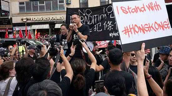 Alvin Yeung, que é membro do Poder Legislativo de Hong Kong e que estava de visita à cidade, convocou o protesto realizado na Chinatown de Manhattan. Os participantes, vestindo camisetas negras, pediam "Liberdade para Hong Kong".