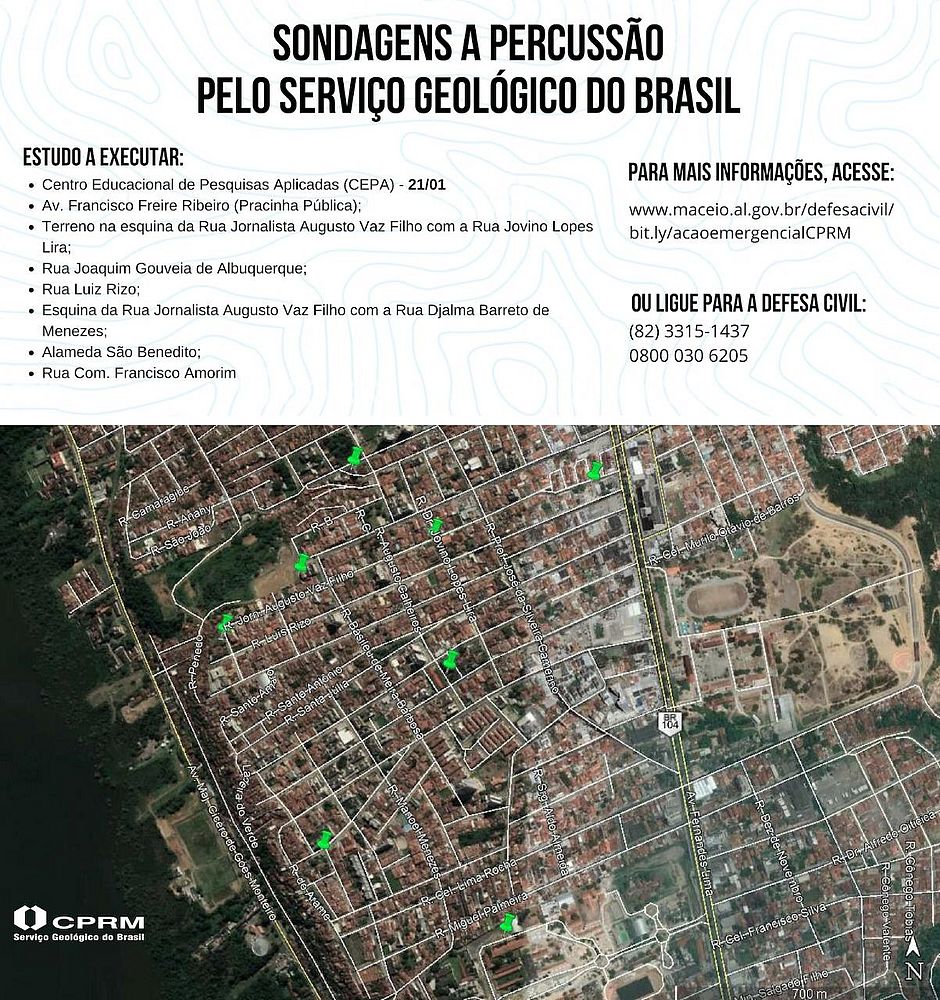 Vale salientar que o estudo não oferece nenhum risco à população, tampouco agrava as rachaduras e afundamentos já identificados. As batidas do martelo podem gerar ruídos sonoros.