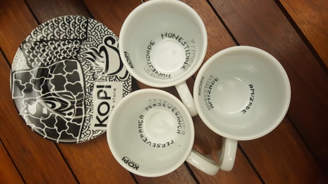 Encanto – O nome Kopi significa café na indonésia. Todas as xícaras (design do artista mineiro Guilherme) possuem palavras no fundo delas, adorei a ideia de Marcos Bernardes e, no mais, boa sorte e ótimo café.