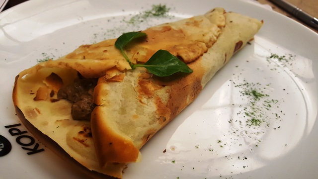 Crepioca – O filé ao molho gorgonzola merece toda atenção, a massa é preparada com a goma da tapioca, bem sequinha, e a carne macia e com a medida certa de queijo.