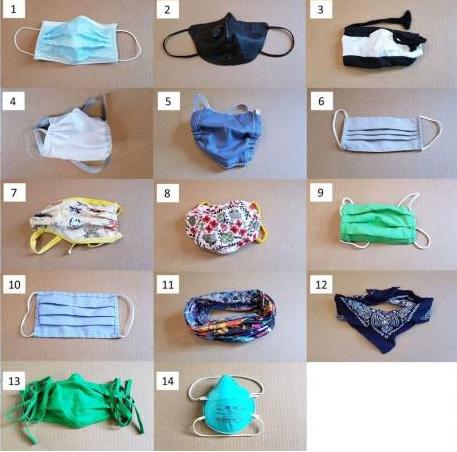 Máscaras de algodão, feitas a mão, forneceram uma boa cobertura, eliminando 70% a 90% das gotículas expelidas pela fala. Por outro lado, as bandanas dobradas apenas reduziram as gotículas perdidas em cerca de 5%. Já a lã de pescoço – acessório frequentemente usado por corredores – aumentou a quantidade de spray. Uma possível explicação para esse fenômeno é que o tecido dispersa as gotas maiores em muitas gotas menores, aumentando a quantidade.
