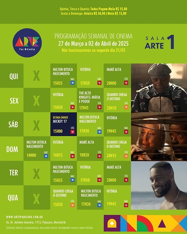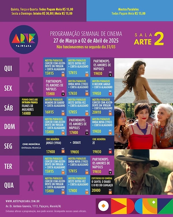 Disponível em: Cinesystem (Parque Shopping) e Arte Pajuçara.