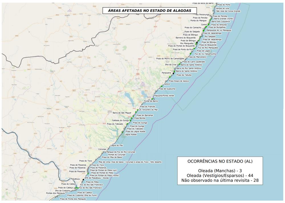 Por outro lado, o total de praias que já tiveram óleo e agora são consideradas livres do problema só aumenta. No início do mês, eram 7, e ontem chegaram a 28.
