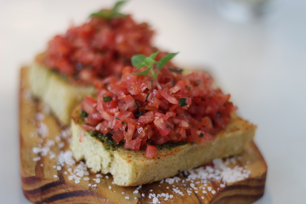 Outra beldade do chef Thiago Brandão é o pão (fabricação da casa) que dá boas vindas a quem chega ao restaurante italiano. A iguaria pode ir à mesa em fatias, com o nobre propósito de raspar um molho de tomate, ou mesmo jogar apenas azeite e sal. Simples e bom. Ou no estilo mais tradicional, bruschettas (fatias de pão no azeite, tomates cortados divinamente em pedaços, sal, pimenta do reino, alho e manjericão).