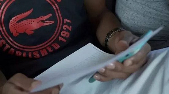Na sala do pequeno sobrado da família, o rapaz recebeu da reportagem uma cópia da carta que o tirou do presídio. "Lembro bem quando escrevi essa. Foi a única com tinta era verde...", diz.