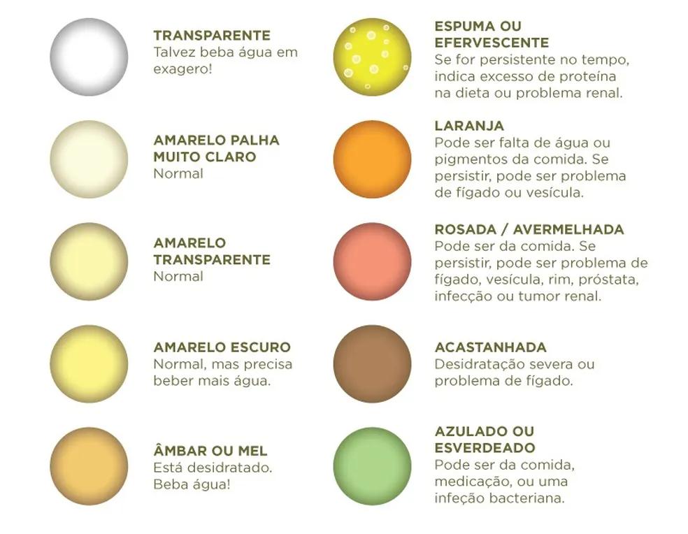 Mas nem sempre a coloração do xixi varia apenas entre amarelo e marrom. Em determinadas ocasiões, a urina pode sair com outras cores.
