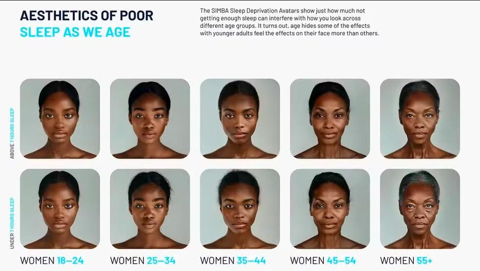 A partir dos dados obtidos, a empresa usou IA para fazer simulações do impacto da privação do sono no rosto das pessoas.