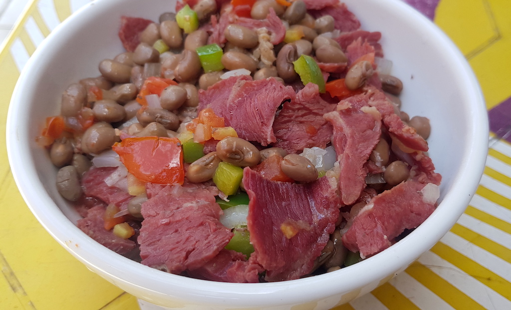 Arrumadinho de charque com ou sem farinha, o freguês escolhe
