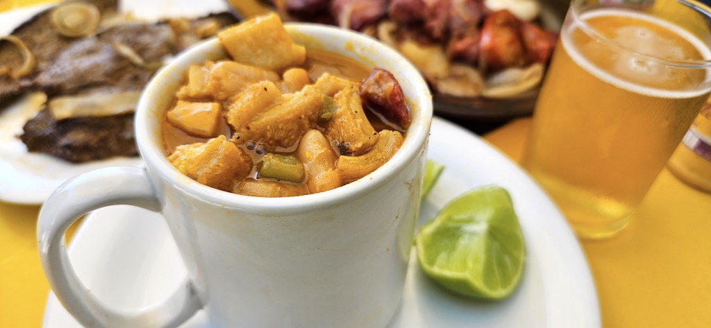Mas voltando ao nome Gorogogê, também conhecida como caldeirada de feijão carioquinha com pé de porco, charque, costela de boi, linguiça, tripa, fato, quiabo, maxixe, repolho… É de comer rezando, e tem mais que ligar para o Fausto para encomendar sua porção, porque, de tão bom, acaba logo.