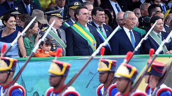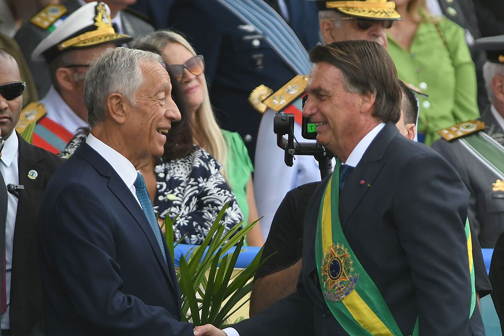 Outro momento registrado pela imprensa foi o cumprimento do presidente Jair Bolsonaro ao presidente de Portugal, Marcelo Rebelo.
