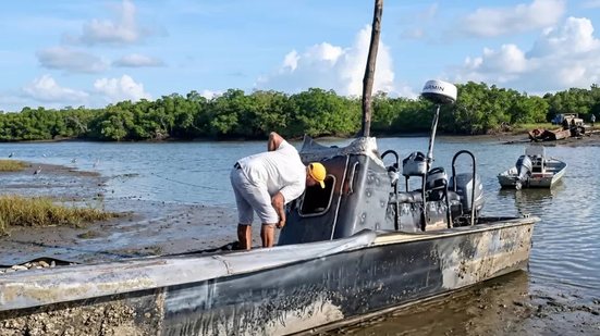 A Polícia Federal e a Marinha do Brasil estão investigando o caso, que inclui a análise de danos no painel da lancha, possivelmente indicativos de uma perseguição, enquanto o barco se torna uma atração local e seu futuro permanece incerto.