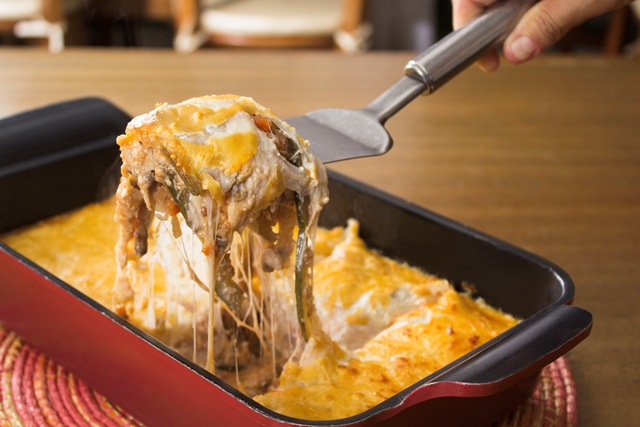 Anamá: lasanha de berinjela com cogumelos e frango defumado