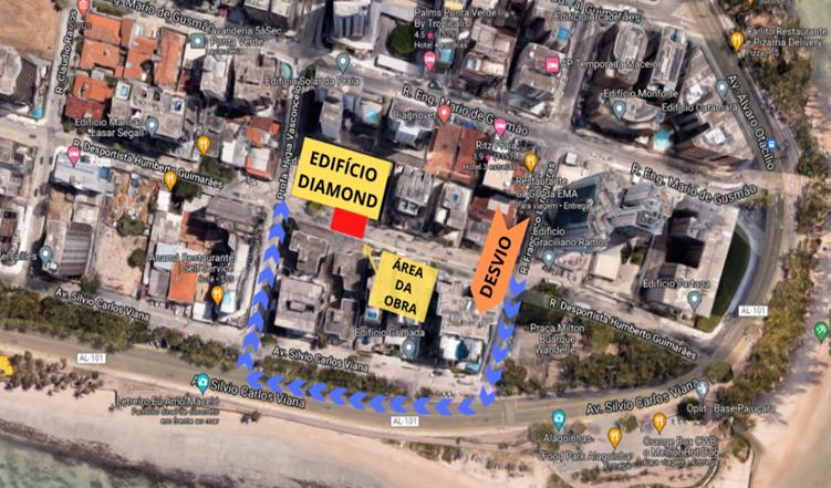 Dessa forma, os condutores que vierem pela praia sentido Pajuçara - Ponta Verde para acessar a Higia Vasconcelos em direção à Avenida Durval Guimarães, deverão seguir pela Desportista Humberto Guimarães e contornar o trecho interditado pela Avenida Mário de Gusmão. Quem vier pela Rua Francisco Laranjeiras em direção à orla para acessar a Desportista Humberto Guimarães, por sua vez, terá que seguir pela Sílvio Carlos Viana e entrar na Higia Vasconcelos.