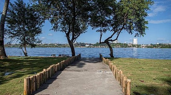 Em um espaço antes tomado por lixo, a Prefeitura colocou areia da praia para que os moradores pratiquem esporte e, ao lado, um gramado, com acessos à lagoa onde as famílias já começaram a se reunir durante as tardes.