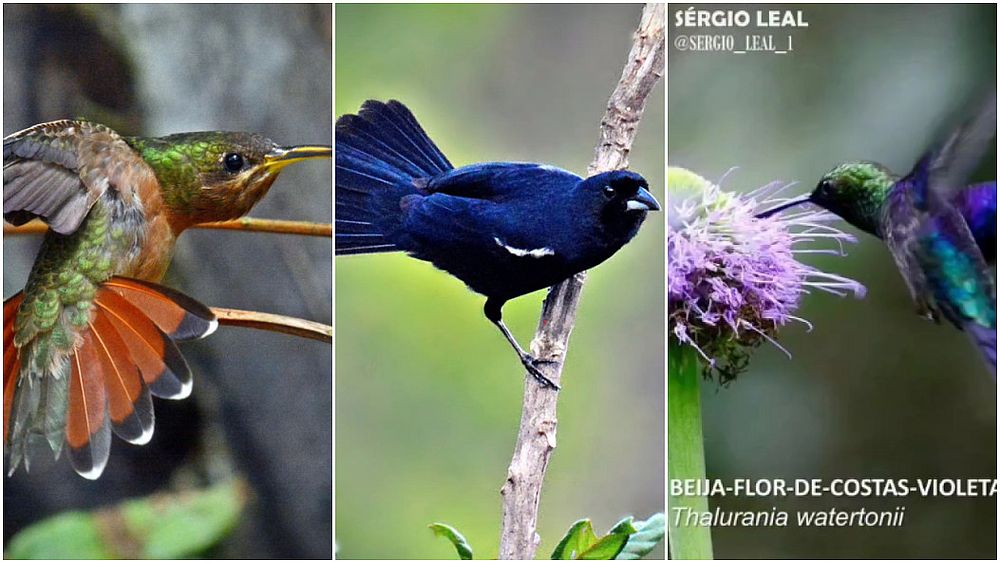 | Balança rabo de bico torto, pipira preta, beija-flor de costas violetas: raridades clicadas por Sérgio. |
