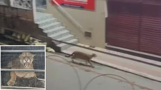 Vídeos divulgados em redes sociais mostram o animal correndo pela Rua Muniz Freire, no centro da cidade. Assustada, a onça se refugiou na garagem de um prédio residencial.