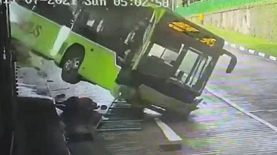 Dois ônibus colidiram em um terminal na cidade de Bukit Batok, em Singapura. Como resultado do acidente, um deles passou do meio-fio, bateu em uma barreira e tombou após cair de uma altura de cerca de cerca de dois metros.