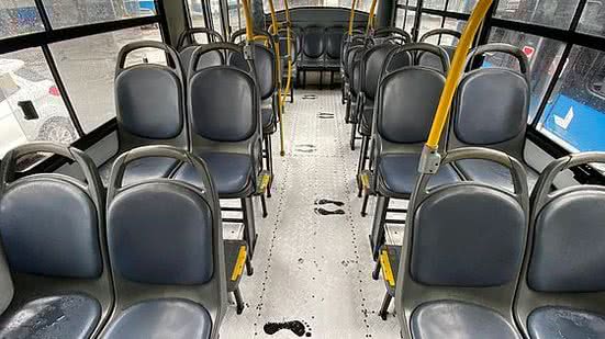 Para atender o decreto, os veículos foram sinalizados sobre o local e a posição de segurança que os passageiros devem ficar dentro dos ônibus.
