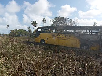 Um ônibus de turismo pegou fogo, no início da tarde desta sexta-feira, 13, após atolar em uma estrada de barro que dá acesso à Lagoa Manguaba, em Marechal Deodoro, região Metropolitana de Maceió. Ninguém ficou ferido.