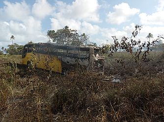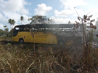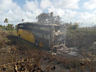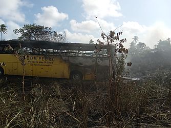Logo após, as chamas consumiram boa parte do ônibus e da vegetação local. Duas viaturas e dez militares foram acionados para controlar o incêndio. "As guarnições de incêndio estiveram no local e debelaram o sinistro utilizando água, abafadores e bombas-costais", informou a assessoria da corporação.
