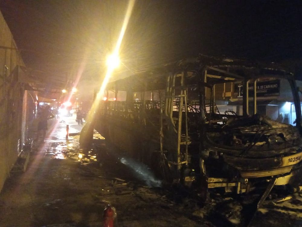 Um ônibus foi destruído pelo fogo, na noite dessa quinta-feira, dia 25, na Avenida Doutor Fábio Vanderlei, no Conjunto Eustáquio Gomes, no bairro Cidade Universitária, em Maceió.
