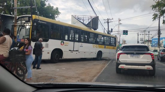 Um ônibus invadiu a contramão da Rua Comendador Calaça, no bairro do Poço, parte baixa de Maceió, saiu da pista e parou na calçada, após um acidente. O caso foi registrado na manhã desta quarta-feira, 21.