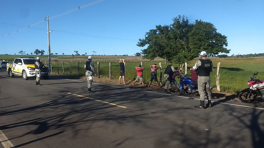 As guarnições do Tático Rodoviário acompanharam a situação e os agentes abordaram os condutores quilômetros à frente. Eles estavam inabilitados e tiveram as motos recolhidas.
