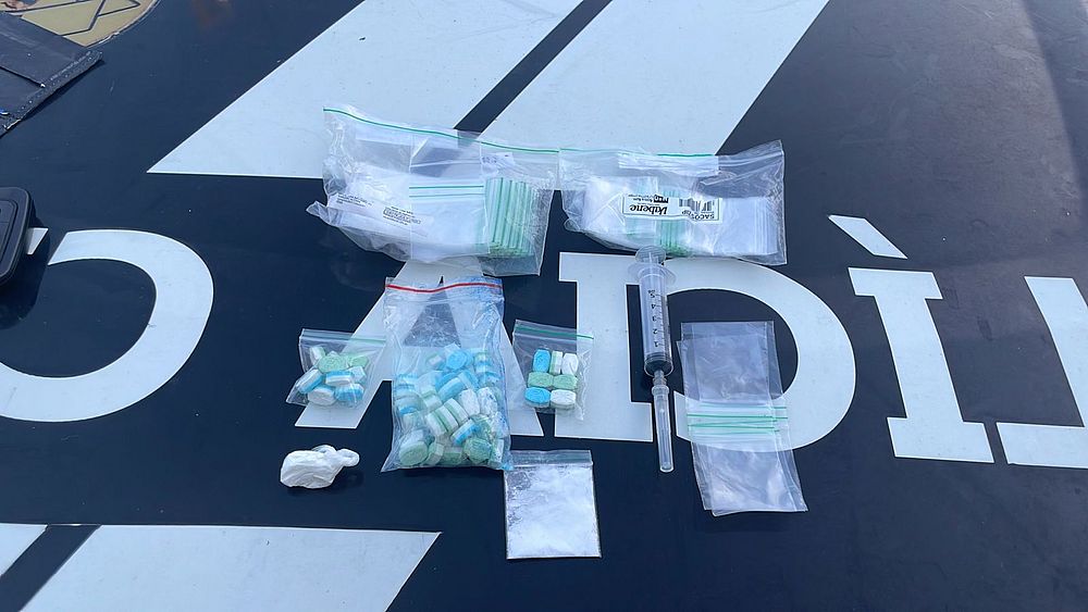 Uma quantidade de drogas sintéticas, cocaina, além de seringas. Ao todo, foram 72 comprimidos de Ecstasy/MDMA, dois papelotes de cocaína e vários pacotes de seringa vazios.
