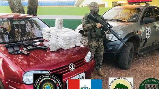 Os policiais foram até o local, onde encontraram mais uma grande quantidade do mesmo entorpecente, totalizando 22 quilos. Além disso, os policiais ainda encontraram um fuzil 556 e duas pistolas calibre 9 milímetros.