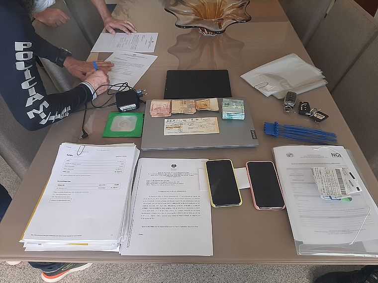 Em um outro alvo foi apreendido cerca de R$ 12 mil em espécie, mais dois veículos sendo um Corolla e uma caminhonete Toyota 2020. Nela havia 18 "santinhos" de um ex-prefeito - que concorreu ao último pleito- e mais R$ 59,00 tudo em um saco plástico, informou o MP. Também foram aprendidos dois notebooks, um iPhone 12 Pro, um iPhone 7, vários documentos constando registros de contratos e movimentação financeira.