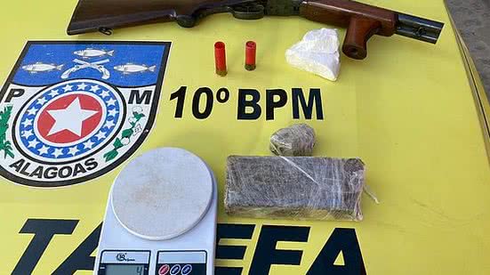 No local, foram apreendidos um veículo e uma arma de fogo, além de uma quantidade de maconha e de cocaína.