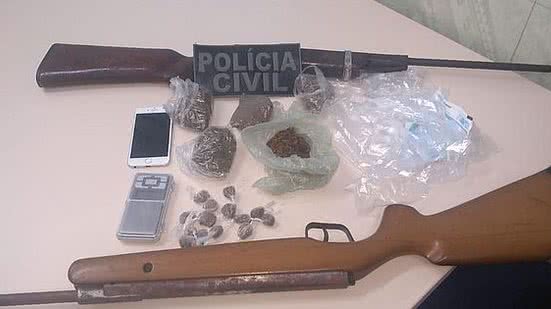 Foram apreendidos uma balança de precisão, 200 g de maconha, duas armas de fogo e aparelhos celulares.