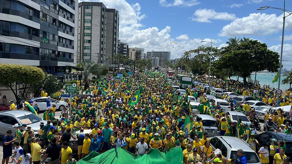 A menos de um mês para as eleições, como era inevitável, as comemorações ao Dia da Independência se fundiram às manifestações eleitorais. Uma multidão de apoiadores do presidente e candidato á reeleição Jair Bolsonaro (PL) pintou de verde e amarelo quilômetros da orla de Maceió, .
