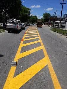 A sinalização horizontal indicando o tráfego de mão dupla ao longo da Avenida Senador Rui Palmeira está sendo realizada pela equipe de Obras Viárias da Superintendência Municipal de Transportes e Trânsito (SMTT). Faixas estão sendo pintadas para orientar os condutores e pedestres que transitarem pela região.