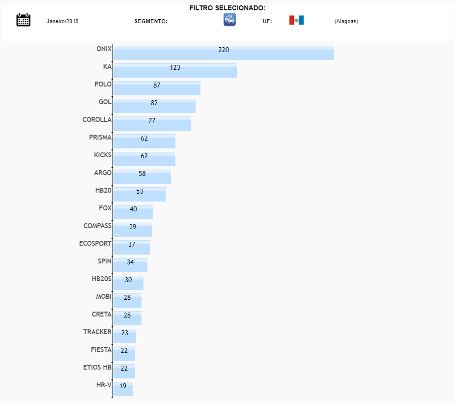 Já em Alagoas o ranking apresenta algumas diferenças em relação aos números nacionais. O Pajuçara Auto analisou os dados fornecidos pela Fenabrave e detalha a seguir.
