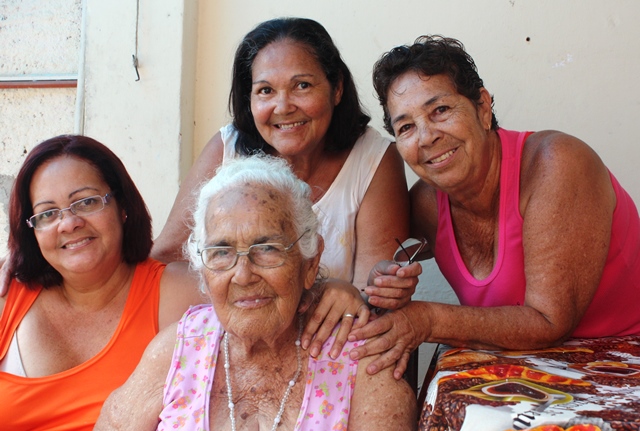 Foto da saudosa Dona Percina com as filhas Anabel, Angélica e Angelina que seguem a tradição