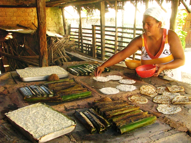 O ingrediente principal dos bolos e doces é originário da mandioca, como goma, massa puba amarela e branca, coco seco, manteiga e sal. Uma curiosidade: nenhuma receita leva ovo, nem mesmo os bolos.