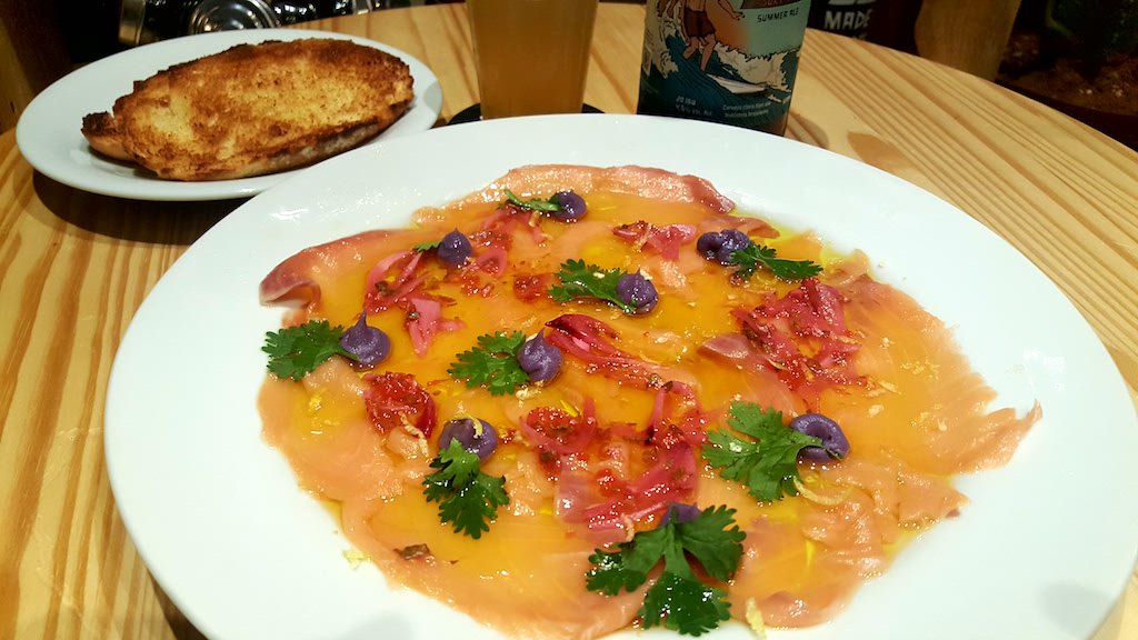 Carpaccio Pura Vida com peixe salmão é show